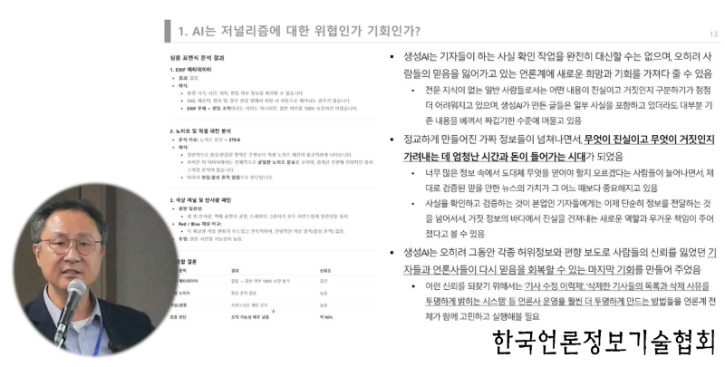 AI 기술이 언론 생태계를 뒤흔들고 있는 가운데, 언론사가 생존하기 위해서는 AI를 활용한 콘텐츠 혁신을 넘어 데이터 기반의 경영 혁신을 이루고, AI 플랫폼을 대상으로 한 B2B 유료화 등 새로운 수익 모델을 시급히 모색해야 한다는 전문가의 제언이 나왔다.