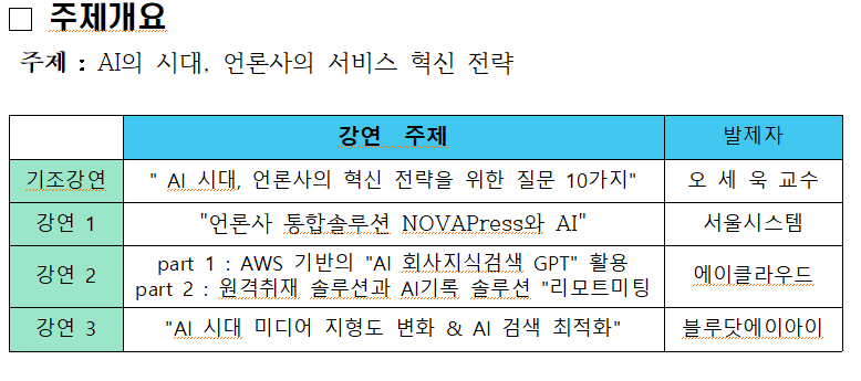 ㅇ 주 제 : AI의 시대, 언론사의 서비스 혁신 전략